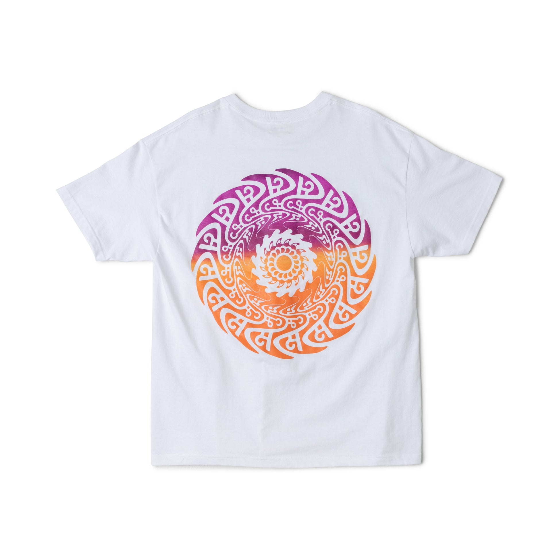 マンダラの中心には全てのエネルギーの源である太陽を置き、夏にピッタリなカラーを2色使用して手刷りしています。袖を通したその瞬間から気持ちが明るく、楽しくなるようなTシャツです。
